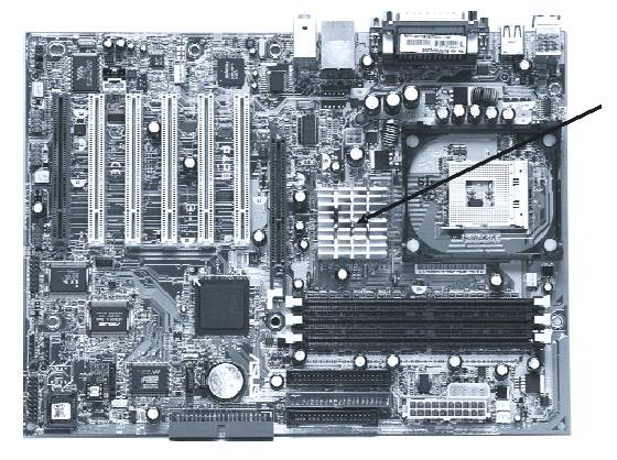 10. Na zdjęciu przedstawiono płytę główną komputera. Strzałką oznaczono: