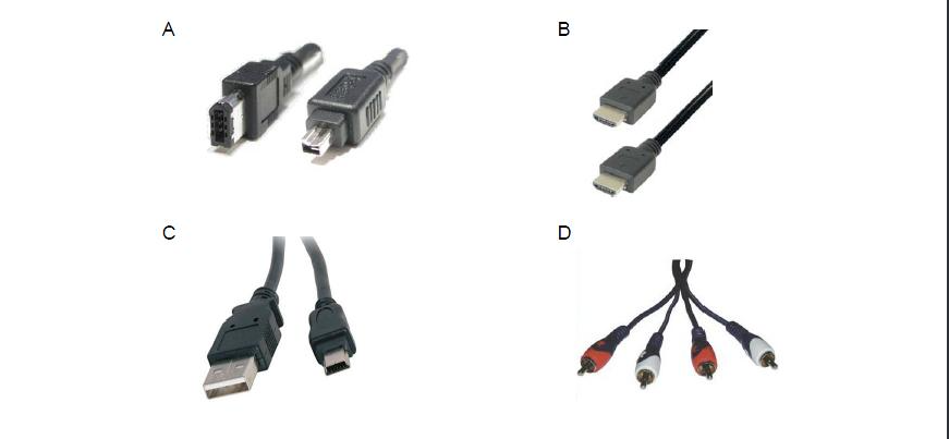 3. Do połączenia kamery cyfrowej posiadającej interfejs IEEE 1394 (FireWire), z komputerem stosuje się kabel z wtyczką przedstawioną na zdjęciu: