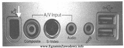 15. Na zdjęciu jest widoczny tylny panel komputera. Jak nazywa się wejście oznaczone strzałką?
